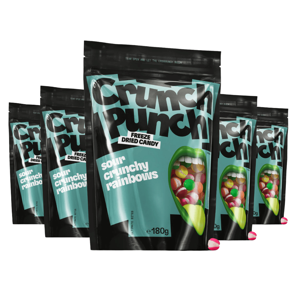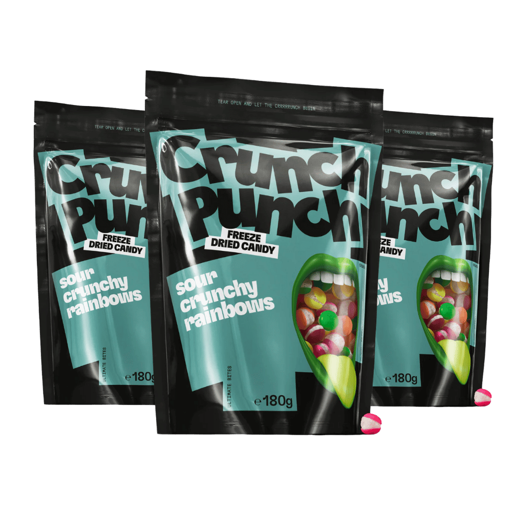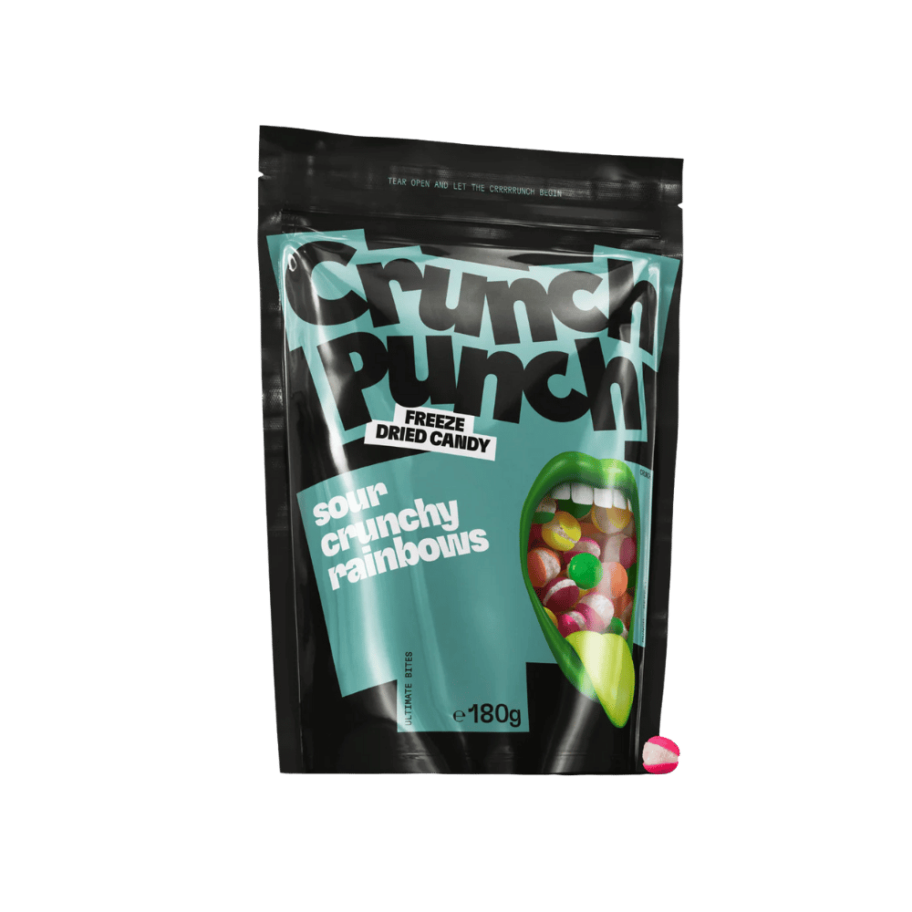 Crunch Punch er frysetørket, fruktig og ekstremt sprøtt – en smaksopplevelse du må høre for å tro. Hver bit eksploderer med syrlig sitron og lime, og den luftige teksturen gir deg et helt nytt forhold til godteri. Ikke klissete. Ikke kjedelig. Bare 100 % crunch.